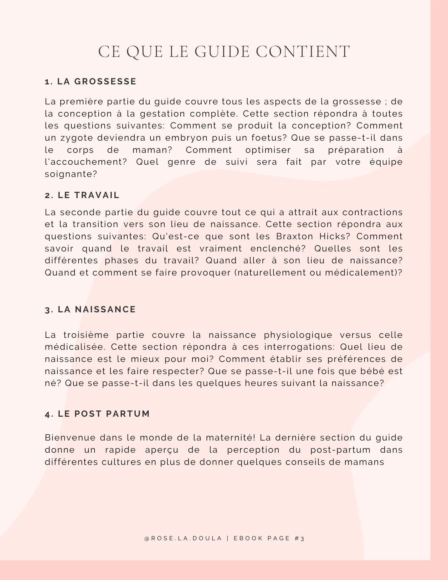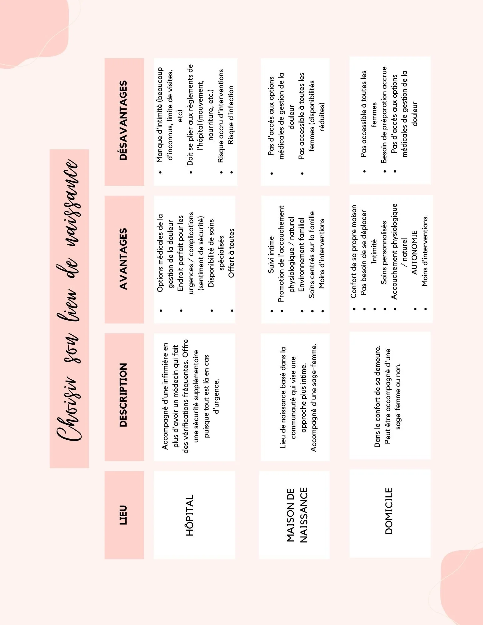 Contient plus de 10 feuilles résumées faciles à imprimer et amener avec soi à l’accouchement